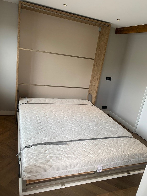 Vanwege een verlaagd plafond gekozen voor bedkast Slim met een speciale interne verankering (niet bovenop de kast).